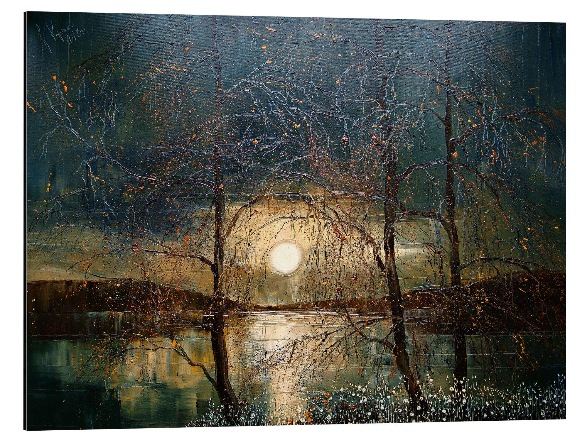 Posterlounge   Wandbilder   Blau   Justyna Kopania   Magnettafel Flusslandschaft bei Vollmond