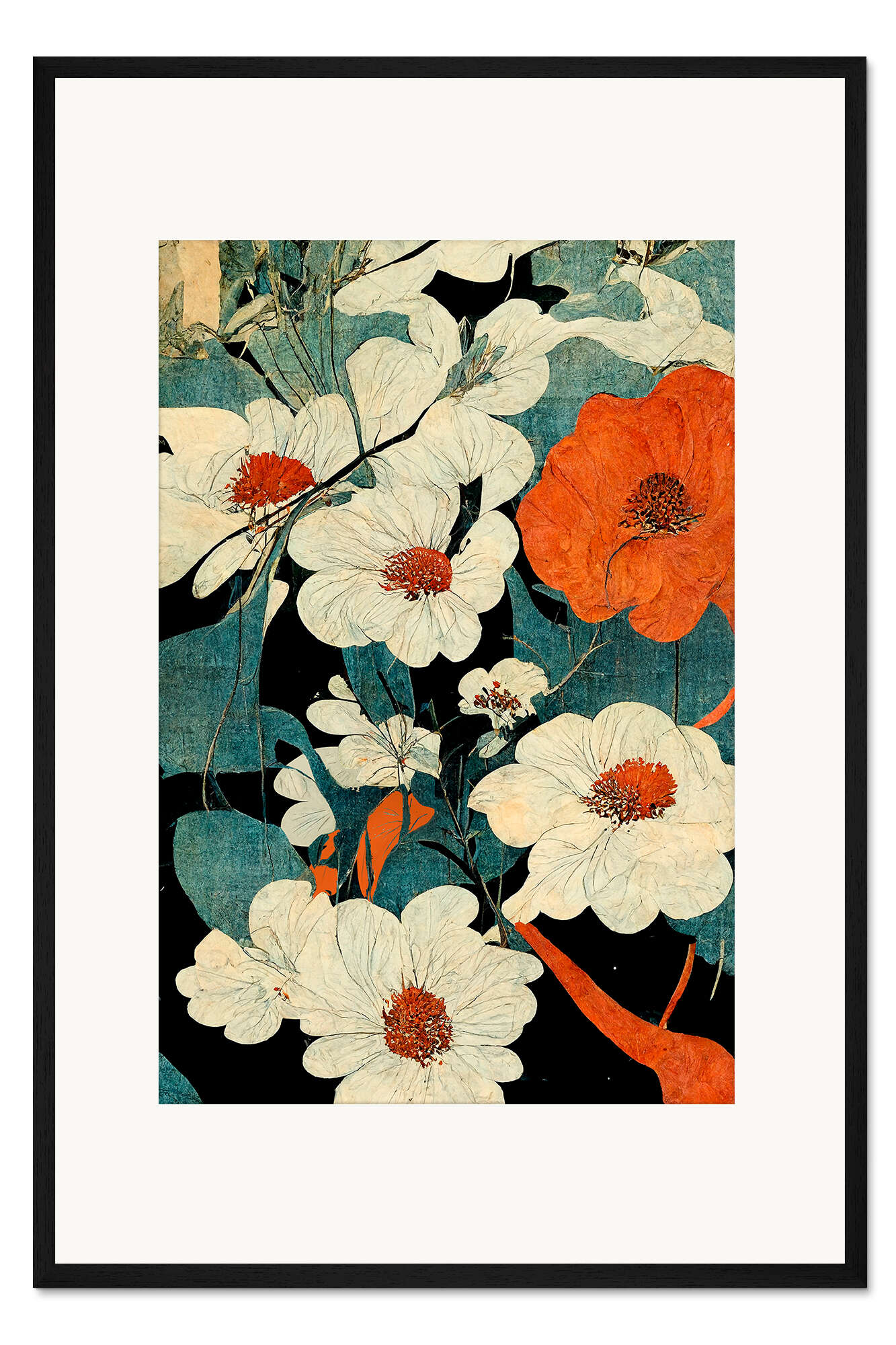 Posterlounge   Wandbilder   Illustration   treechild   Gerahmter Kunstdruck Asiatische Blumen-Kunst