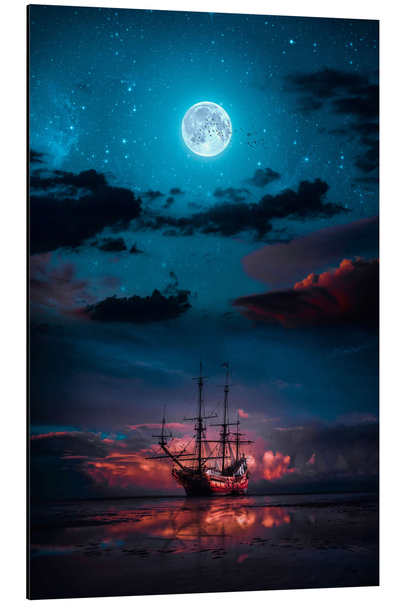 Posterlounge   Wandbilder   Fantasy   Gen Z   Magnettafel Das Sparrow-Schiff im Abendrot bei Vollmond