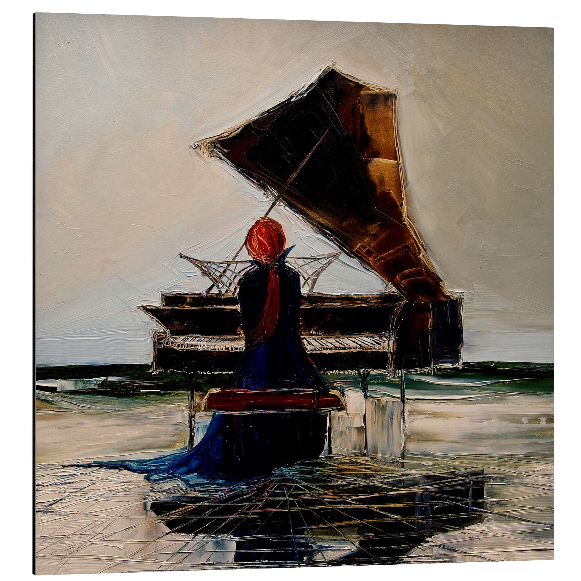 Magnettafel Pianospielerin am Strand