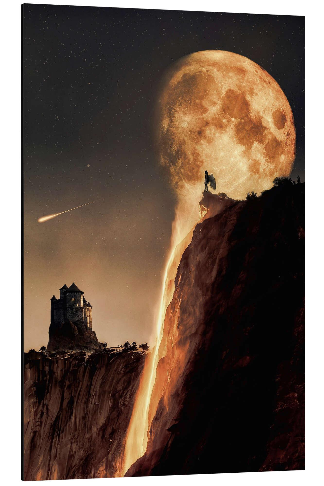 Posterlounge   Wandbilder   Fotografie   Fotocollage   Gen Z   Magnettafel Goldener Vollmond fließt in die Angel Falls hinein