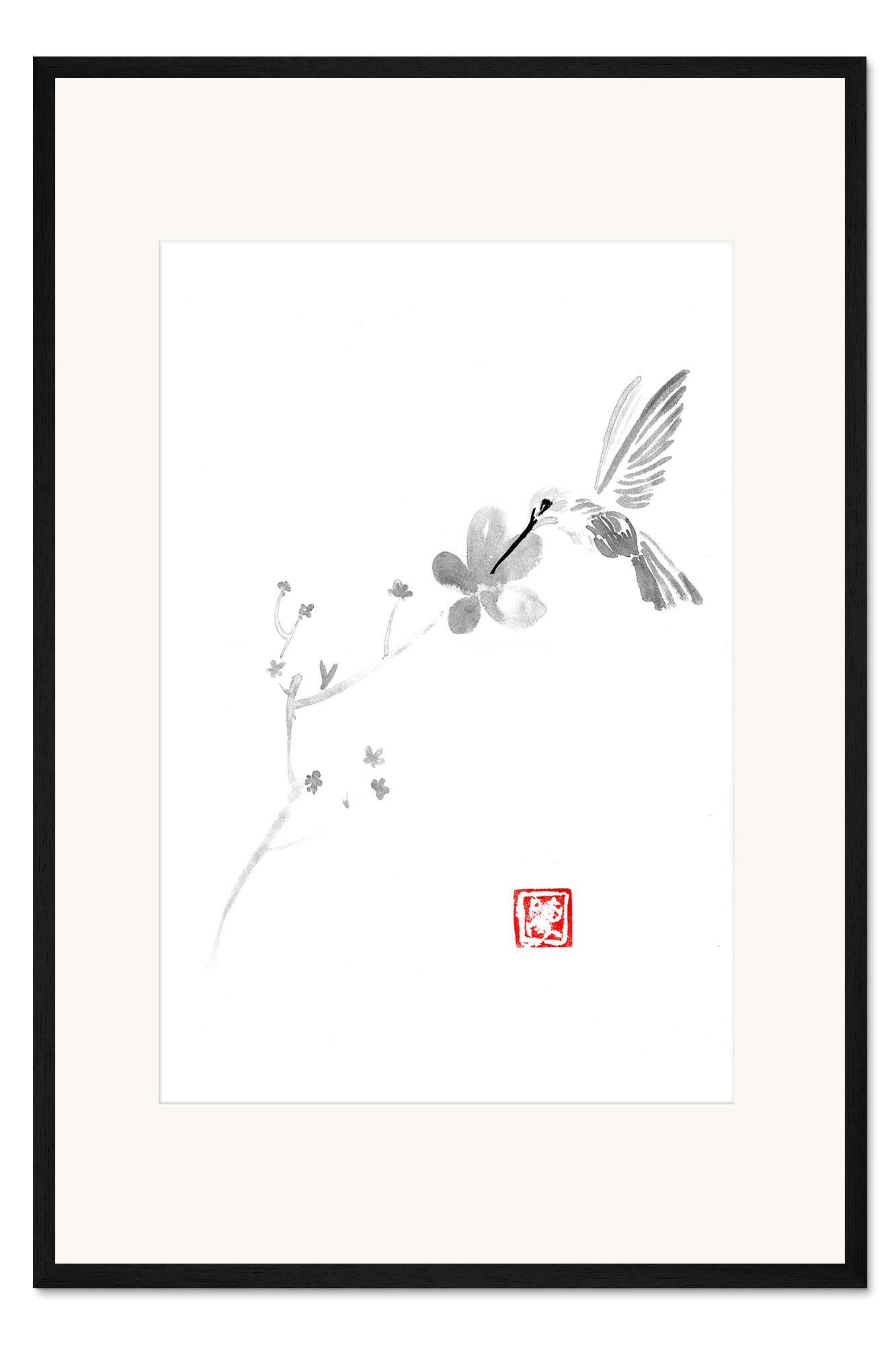 Posterlounge   Wandbilder   Schwarz-Weiß   Péchane   Gerahmter Kunstdruck Sakura Kirschblüte und Vogel