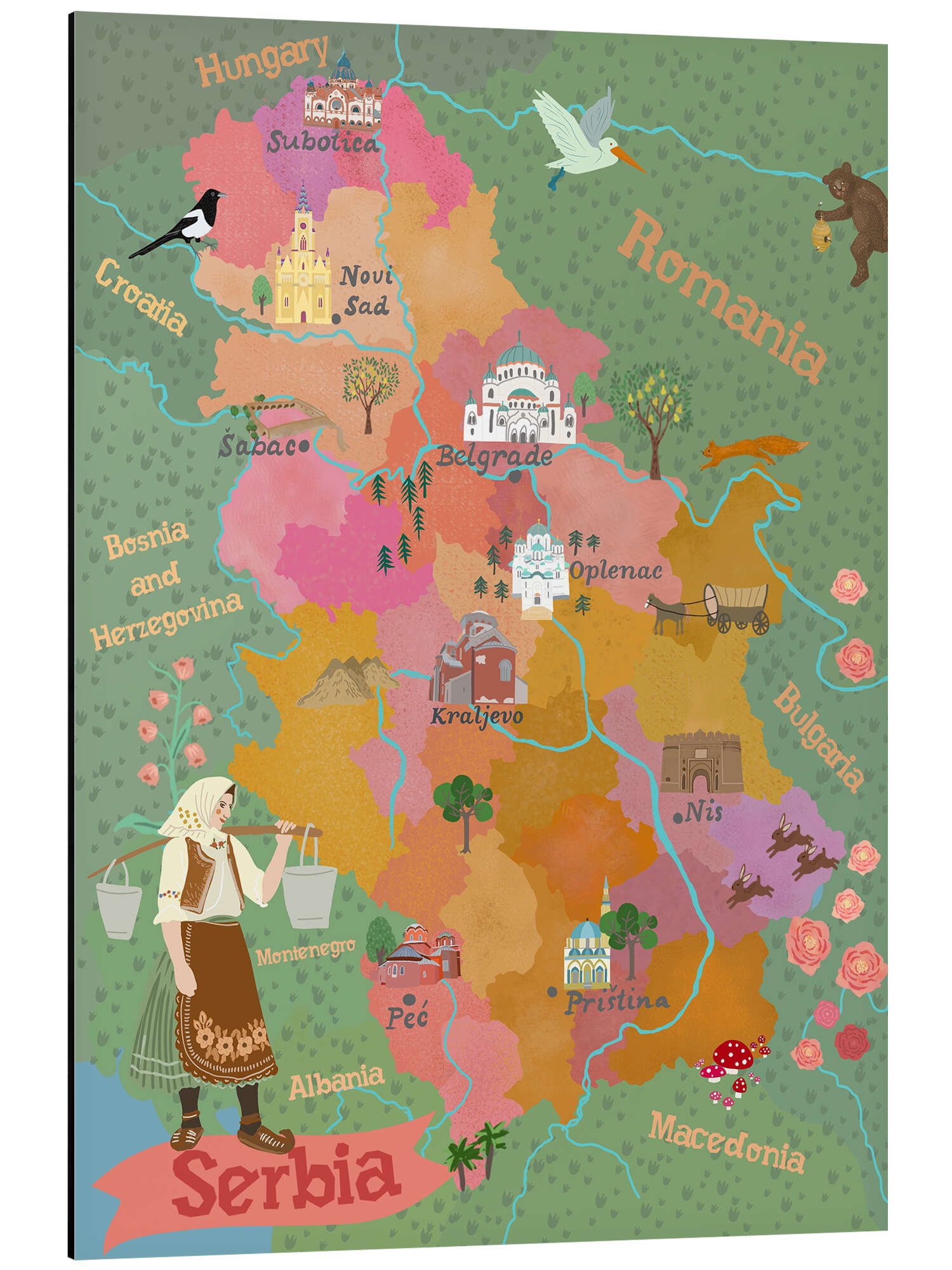 Posterlounge   Wandbilder   Rosé   Tori Taika   Magnettafel Bunte Karte von Serbien (englisch)