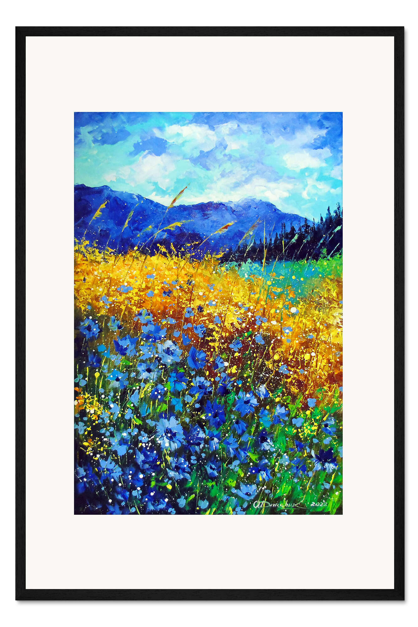 Posterlounge   Wandbilder   Blau   Olha Darchuk   Gerahmter Kunstdruck Blaue Wildblumen im Bergtal