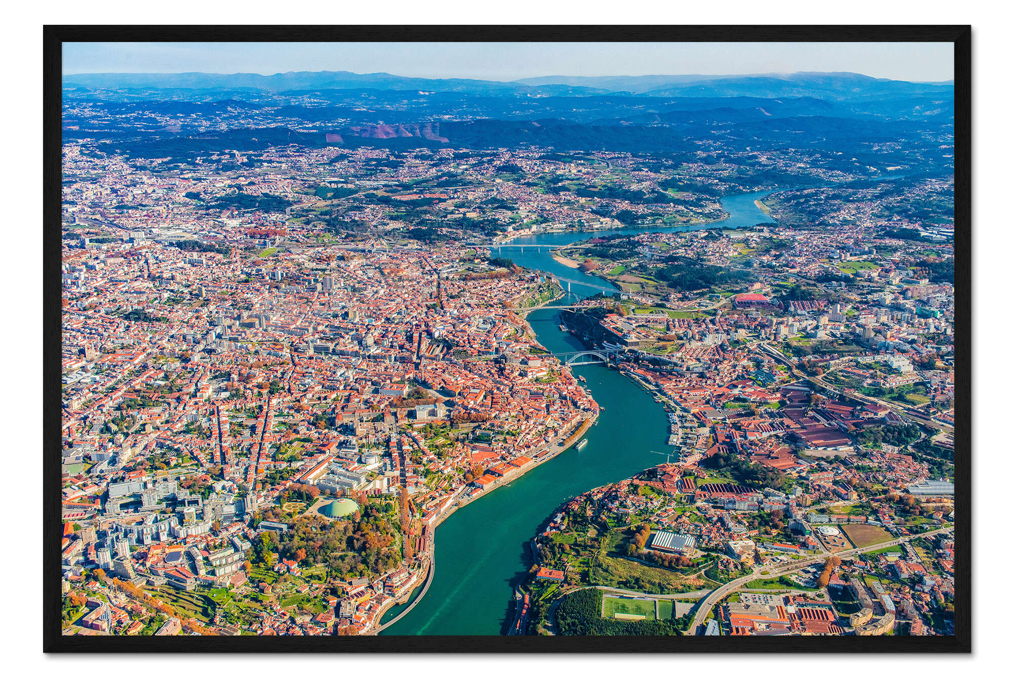 Posterlounge   Wandbilder   Fotografie   HADYPHOTO   Gerahmter Kunstdruck Douro Fluss in Porto von oben