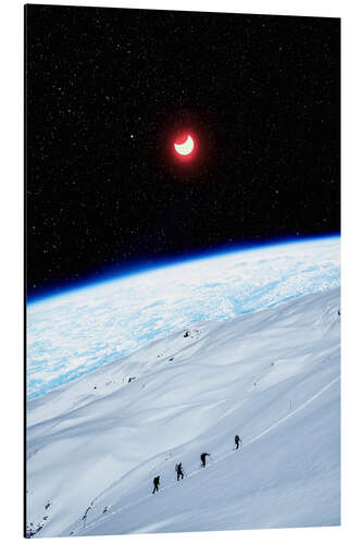 Posterlounge   Wandbilder   Fantasy   Gen Z   Magnettafel Bergsteiger des Weltraums unter rot leuchtendem Halbmond