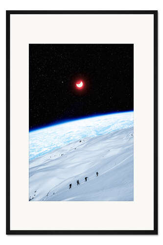 Posterlounge   Wandbilder   Fantasy   Gen Z   Gerahmter Kunstdruck Bergsteiger des Weltraums unter rot leuchtendem Halbmond