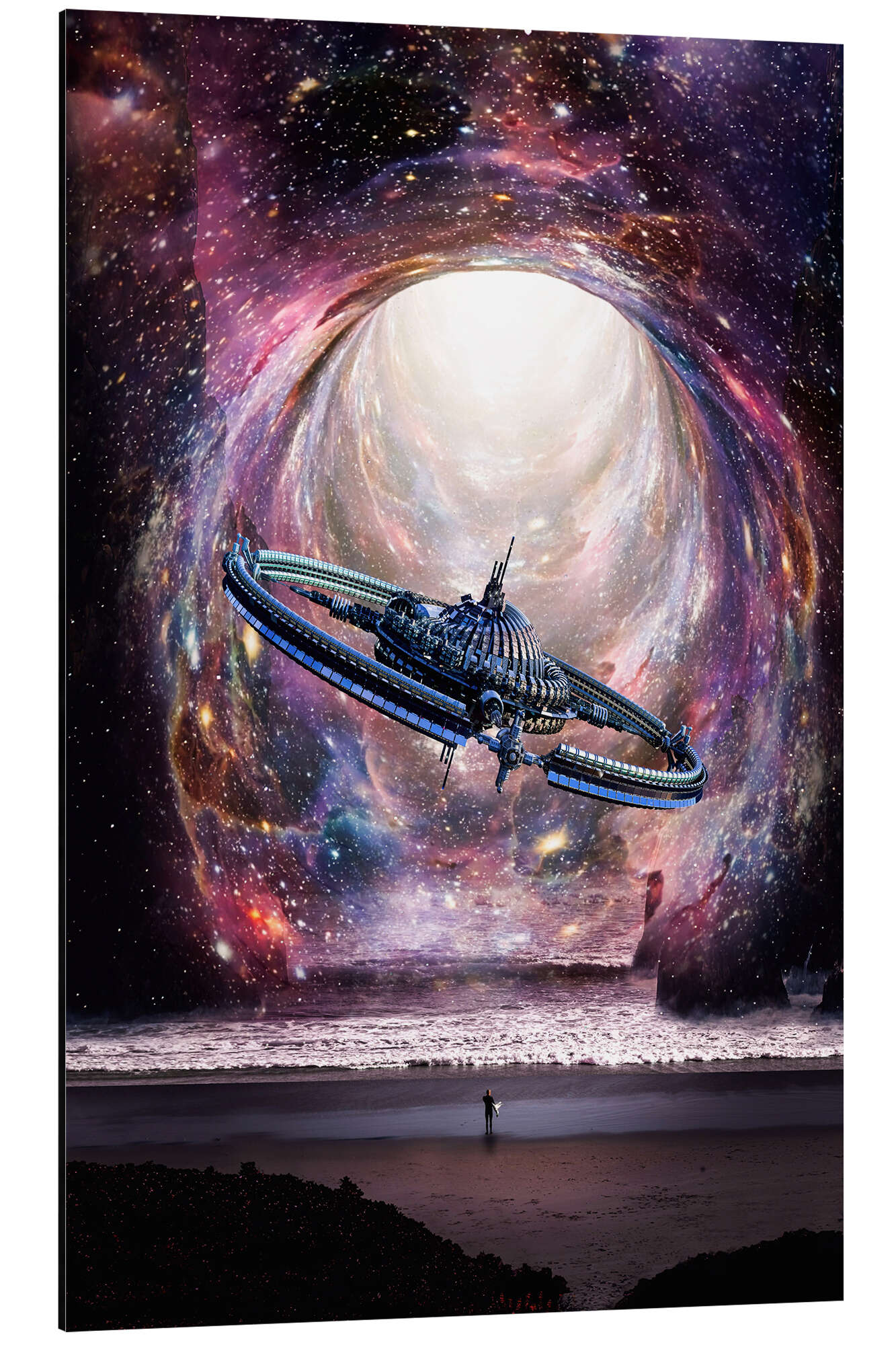 Posterlounge   Wandbilder   Fantasy   Gen Z   Magnettafel Surfer am Strand bekommt Besuch eines Alien-Raumschiffes