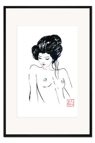 Posterlounge   Wandbilder   Schwarz-Weiß   Péchane   Gerahmter Kunstdruck Zierliche Geisha