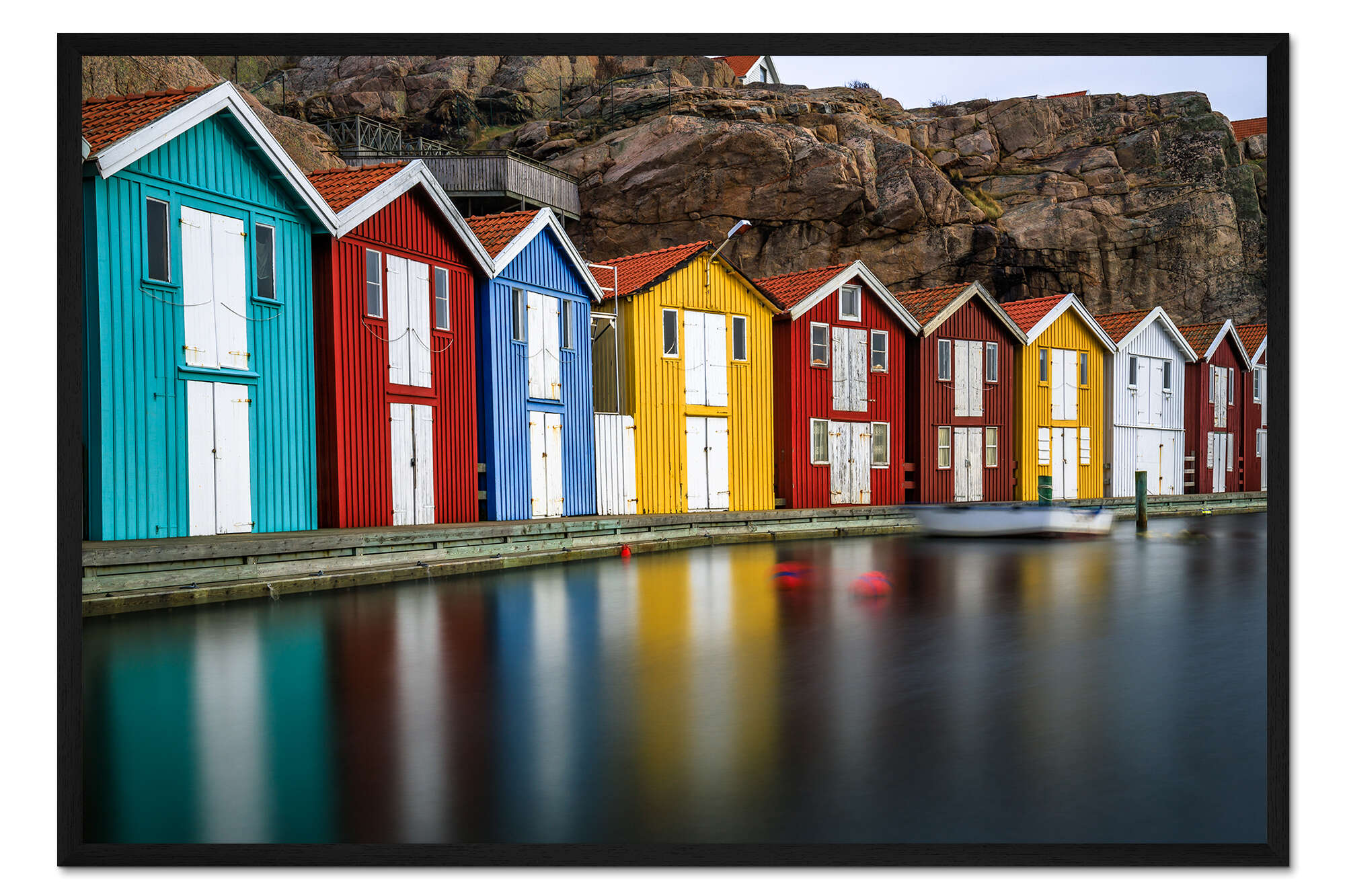 Posterlounge   Wandbilder   Fotografie   Jan Wehnert   Gerahmter Kunstdruck Schwedische Holzhütten am Hafen