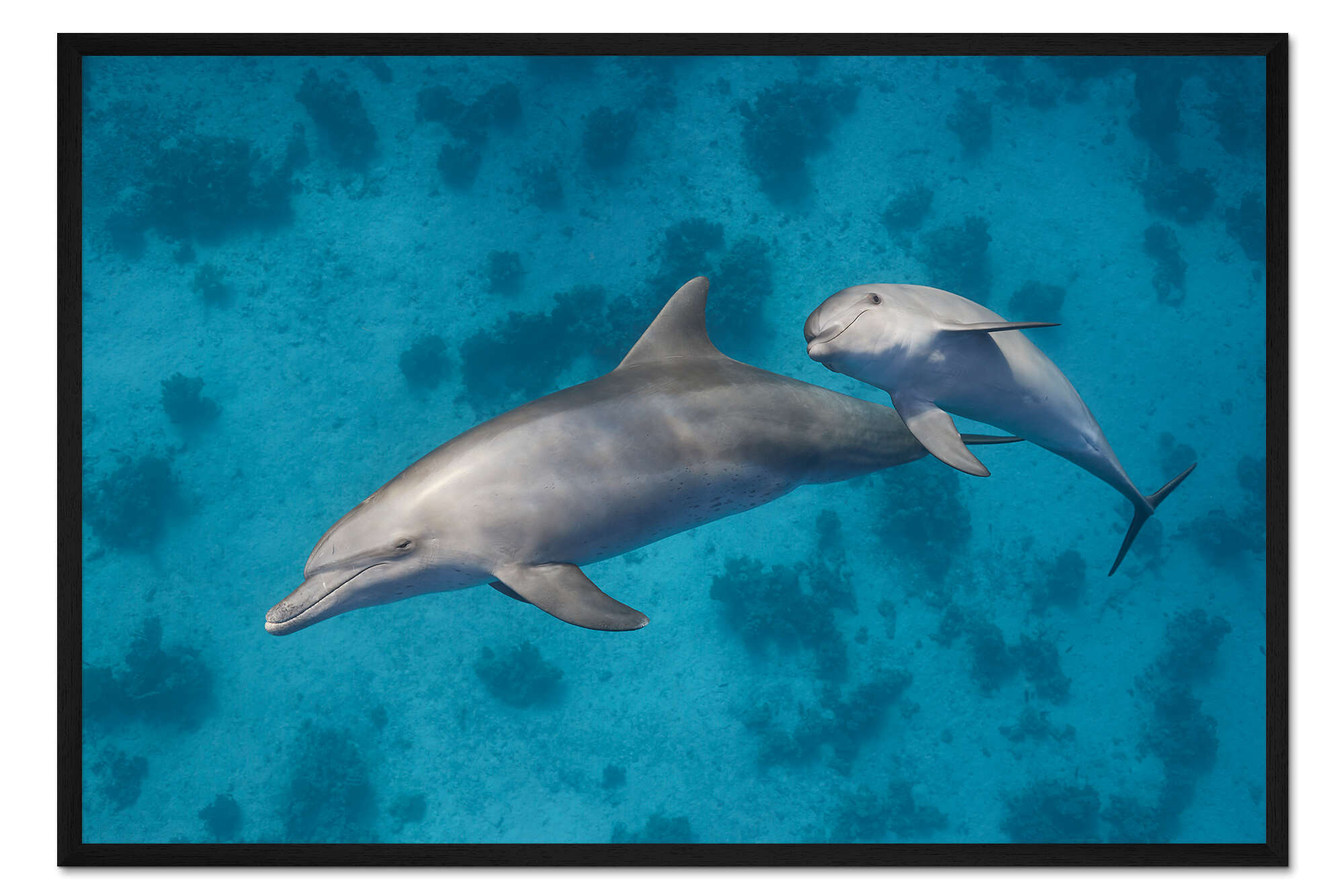 Posterlounge   Wandbilder   Fotografie   nitrogenic   Gerahmter Kunstdruck Mama Delfin mit Baby