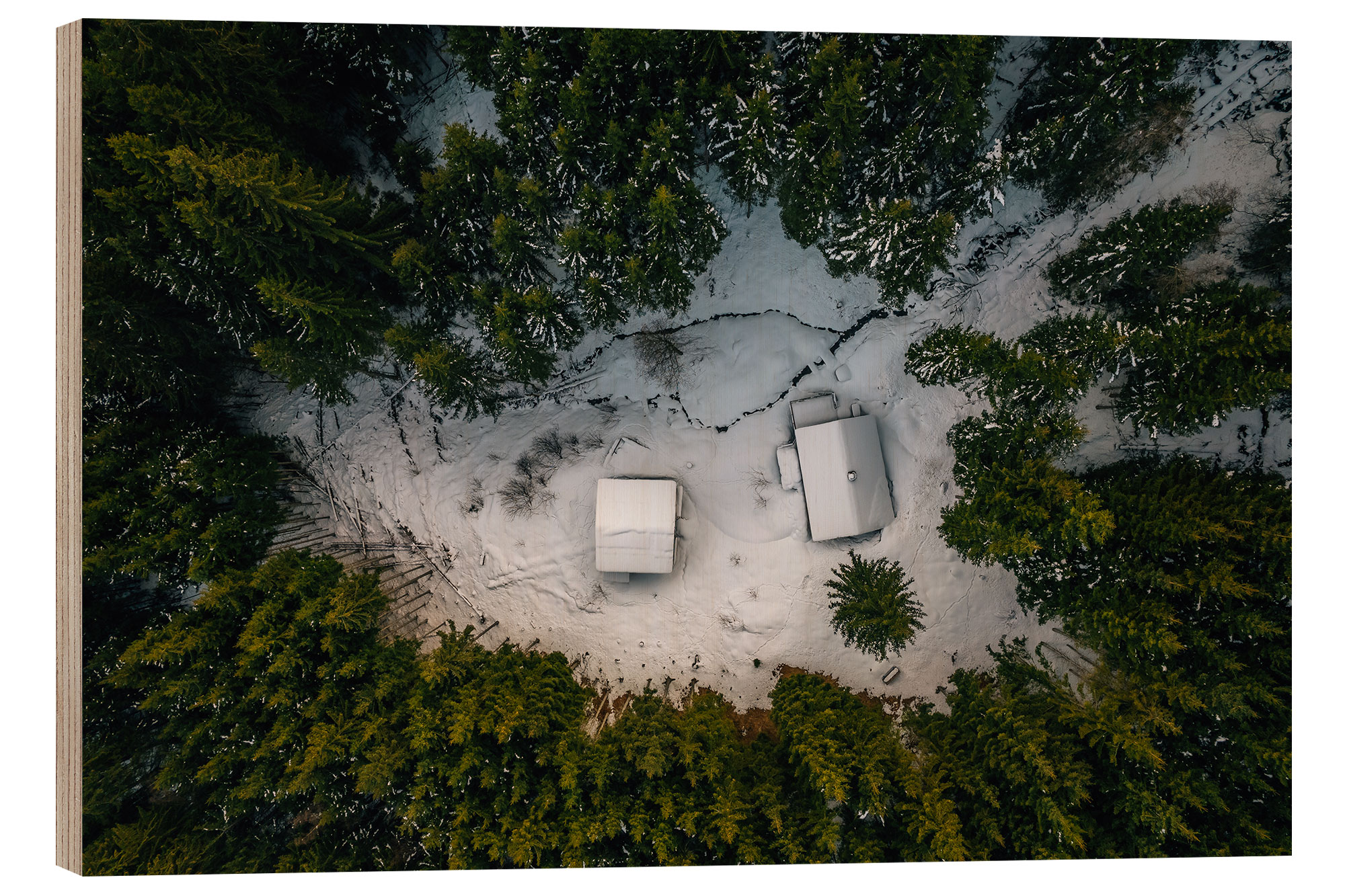 Holzbild Zwei Hütten im Wald
