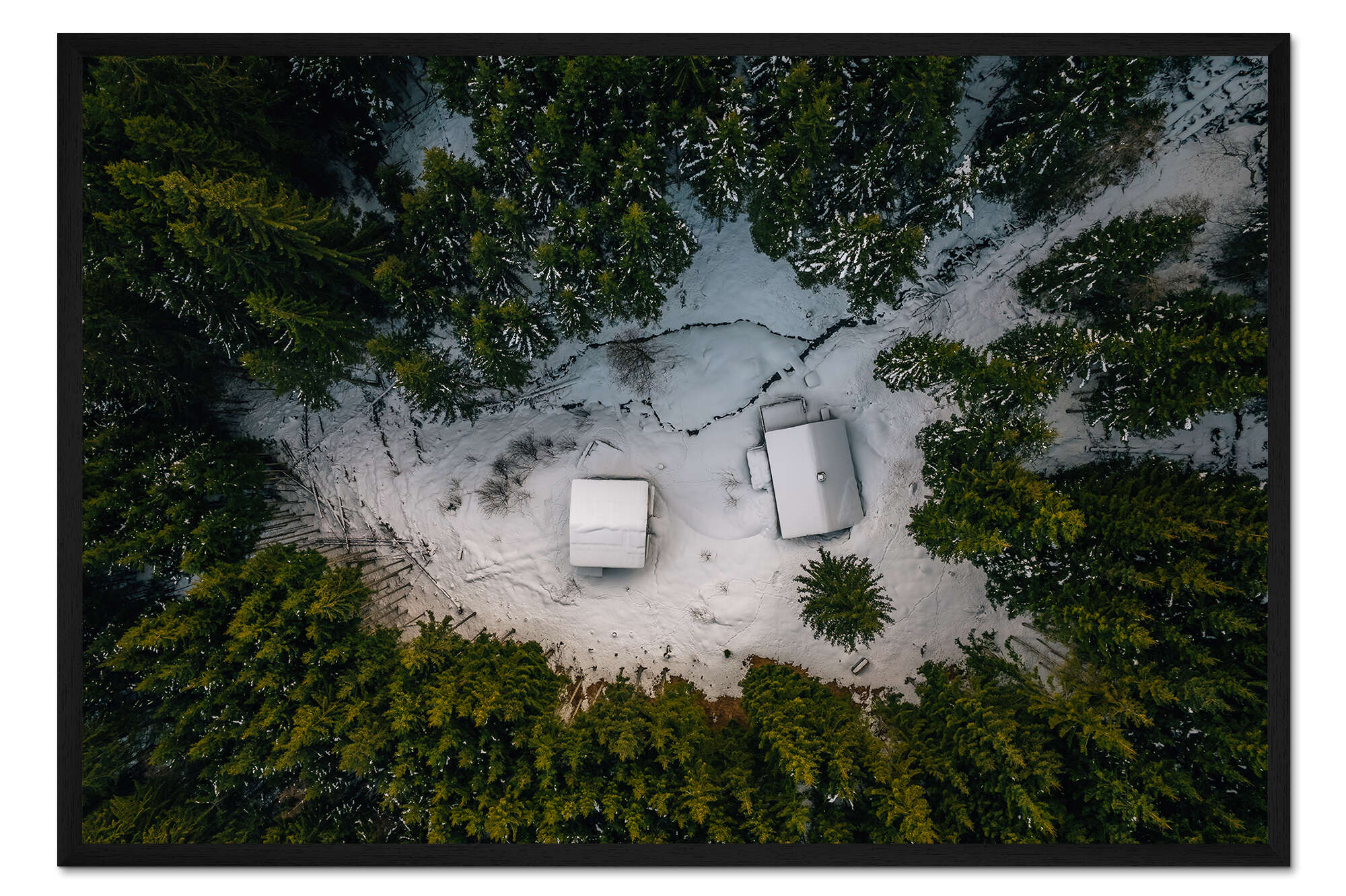 Posterlounge   Wandbilder   Fotografie   Philipp Dietrich   Gerahmter Kunstdruck Zwei Hütten im Wald