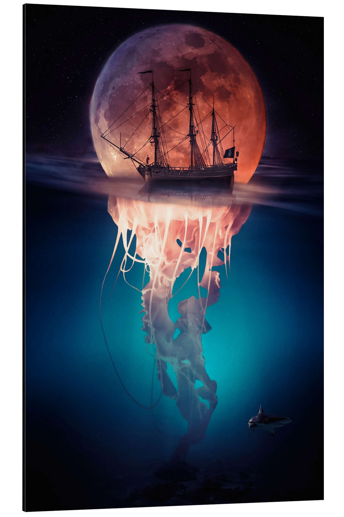 Posterlounge   Wandbilder   Fantasy   Gen Z   Magnettafel Mondqualle mit Piratenschiff