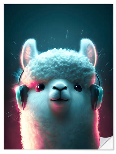Wandsticker Alpaka mit Kopfhörer