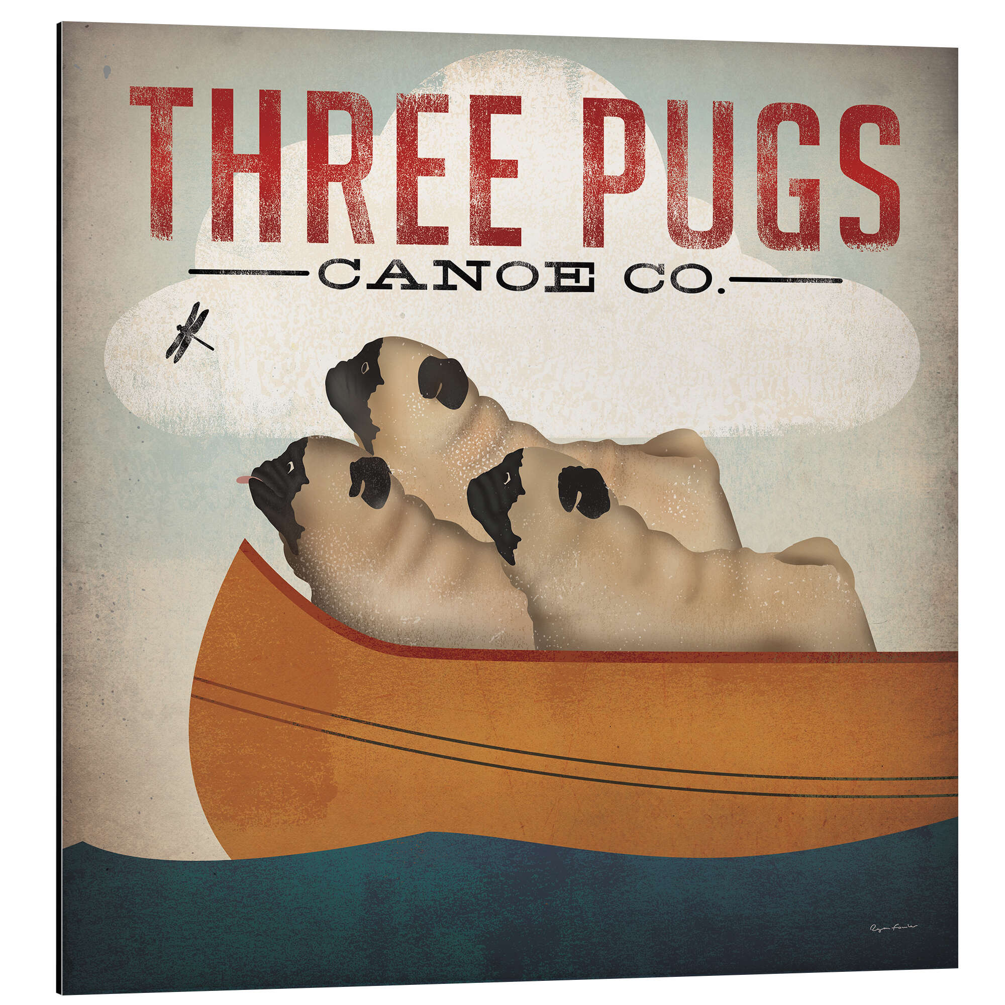 Posterlounge   Wandbilder   Tiere   Haustiere   Hunde   Ryan Fowler   Magnettafel Drei Möpse in einem Kanu