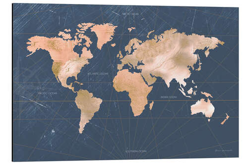 Posterlounge   Wandbilder   Blau   Omar Escalante   Magnettafel Marmorierte Weltkarte