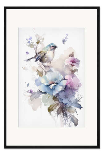Posterlounge   Wandbilder   Malerei   Aquarell Malerei   Dreamscapes   Gerahmter Kunstdruck Blumenaquarell mit Vogel II