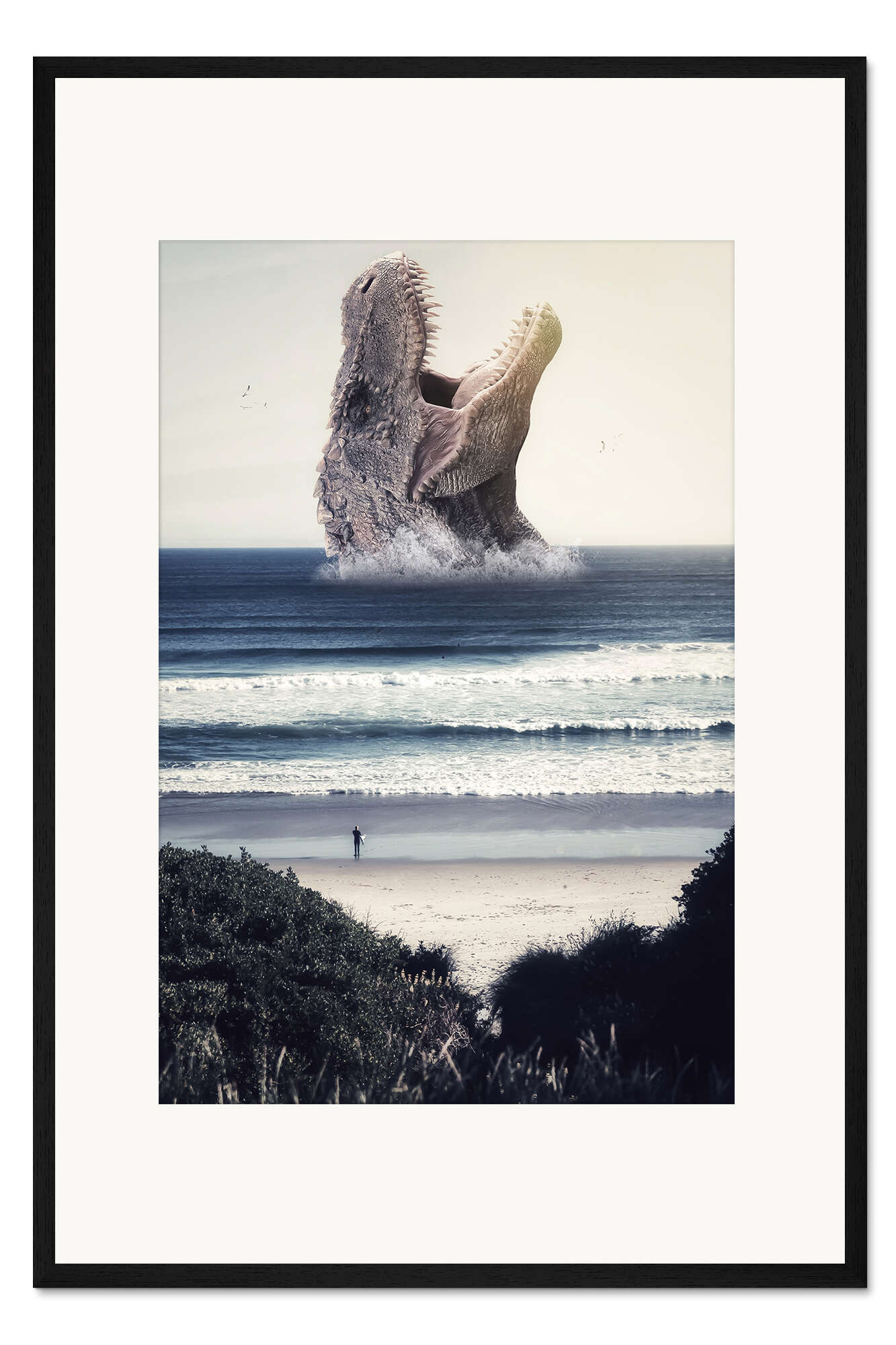 Posterlounge   Wandbilder   Illustration   Collage   Gen Z   Gerahmter Kunstdruck T-Rex on the beach