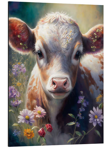 Kleines Kälbchen mit Wildblumen von Dolphins DreamDesign