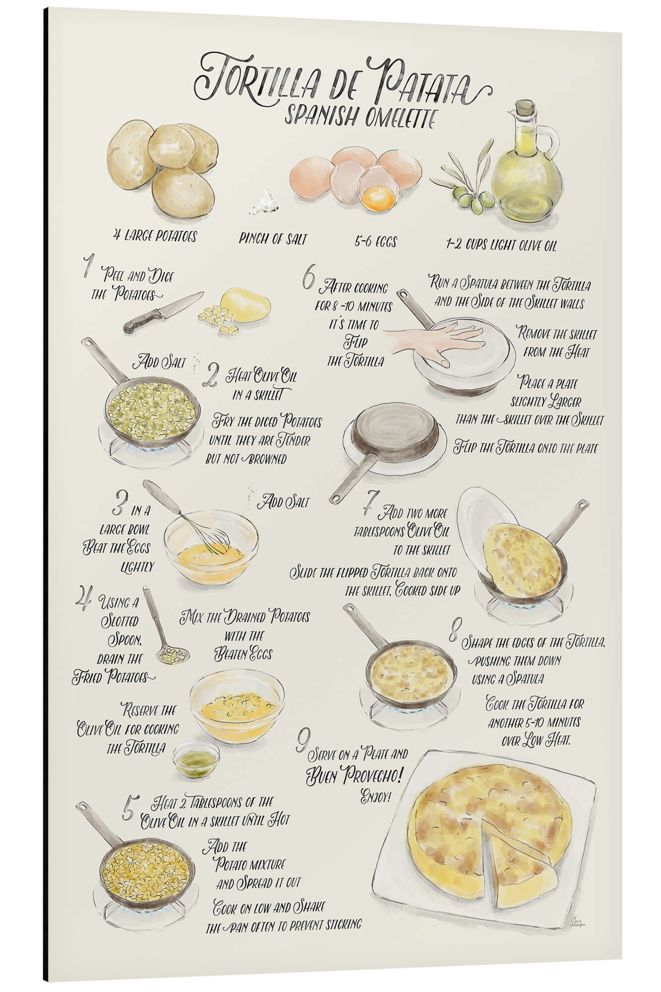 Posterlounge   Wandbilder   Beige   Rosana Laiz Blursbyai   Magnettafel Rezept für Tortilla de Patata (englisch)