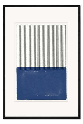 Posterlounge   Wandbilder   Minimalistisch   The MIUUS STUDIO   Gerahmter Kunstdruck Moderne Textur in Blau mit schwarzen Strichen