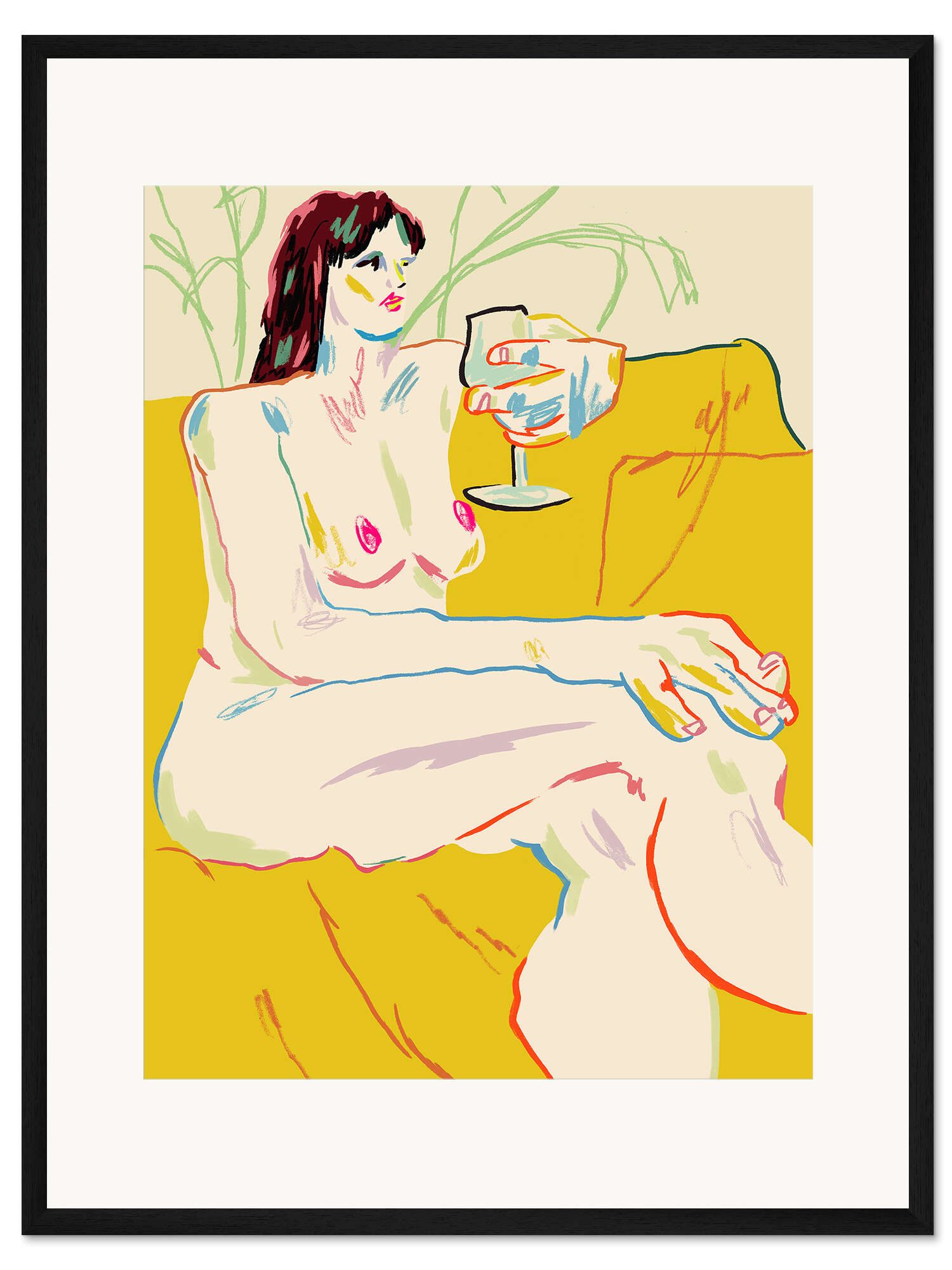 Posterlounge   Wandbilder   Gelb   Gerahmter Kunstdruck Porträt mit Weinglas