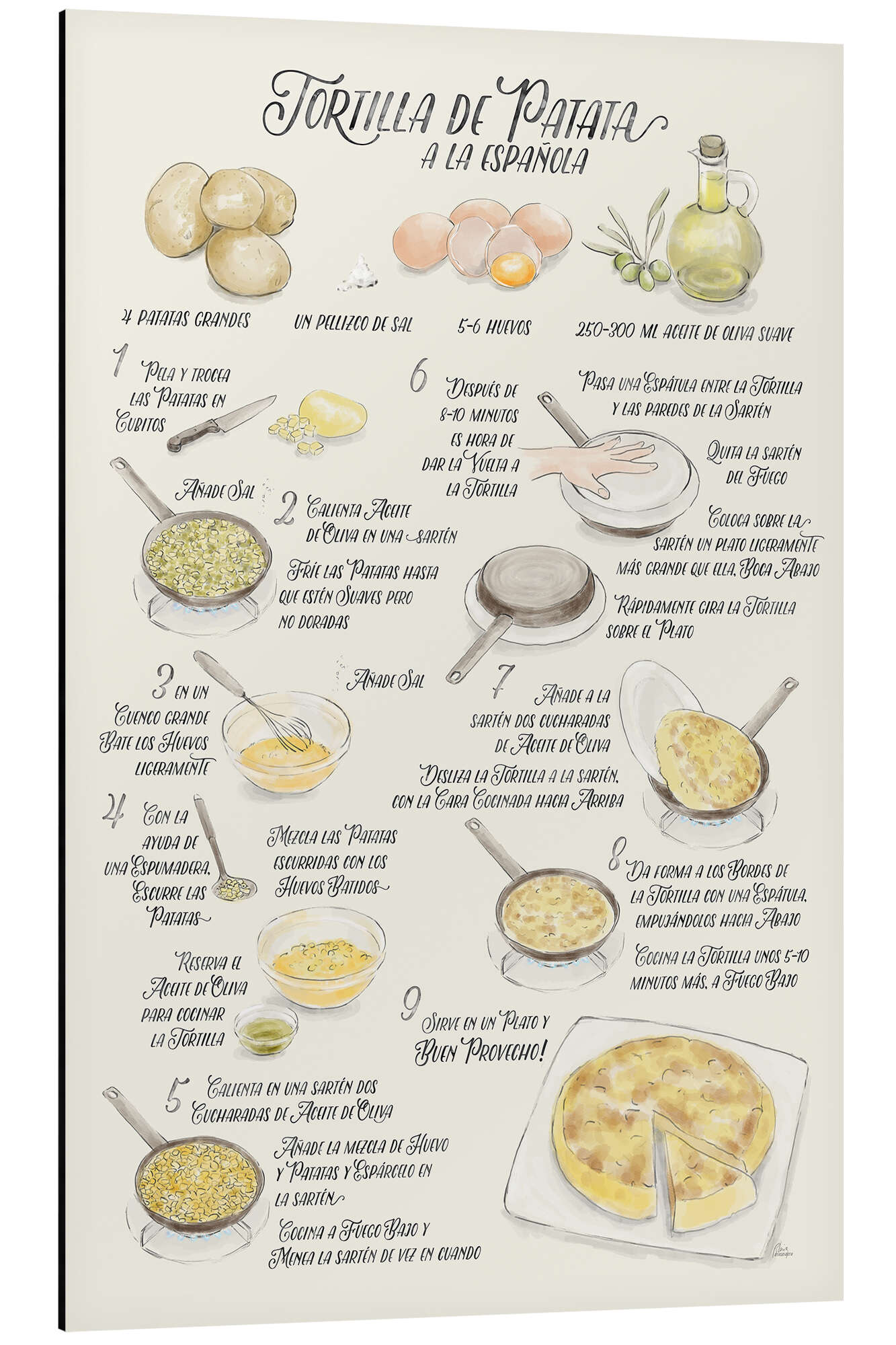 Posterlounge   Wandbilder   Essen & Trinken   Rosana Laiz Blursbyai   Magnettafel Rezept für Tortilla de Patata (spanisch)