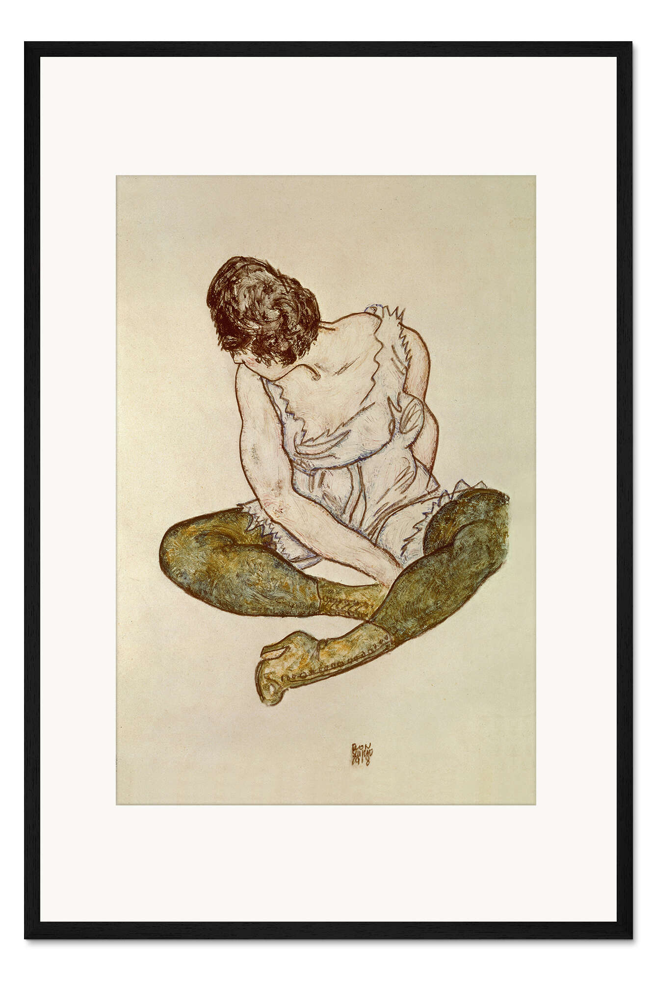 Posterlounge   Wandbilder   Menschen   Frauen   Egon Schiele   Gerahmter Kunstdruck Sitzende Frau mit grünen Strümpfen, 1918