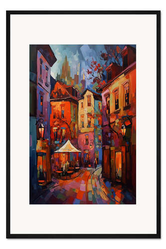 Posterlounge   Wandbilder   Illustration   Michael artefacti   Gerahmter Kunstdruck Straßenszene mit Café