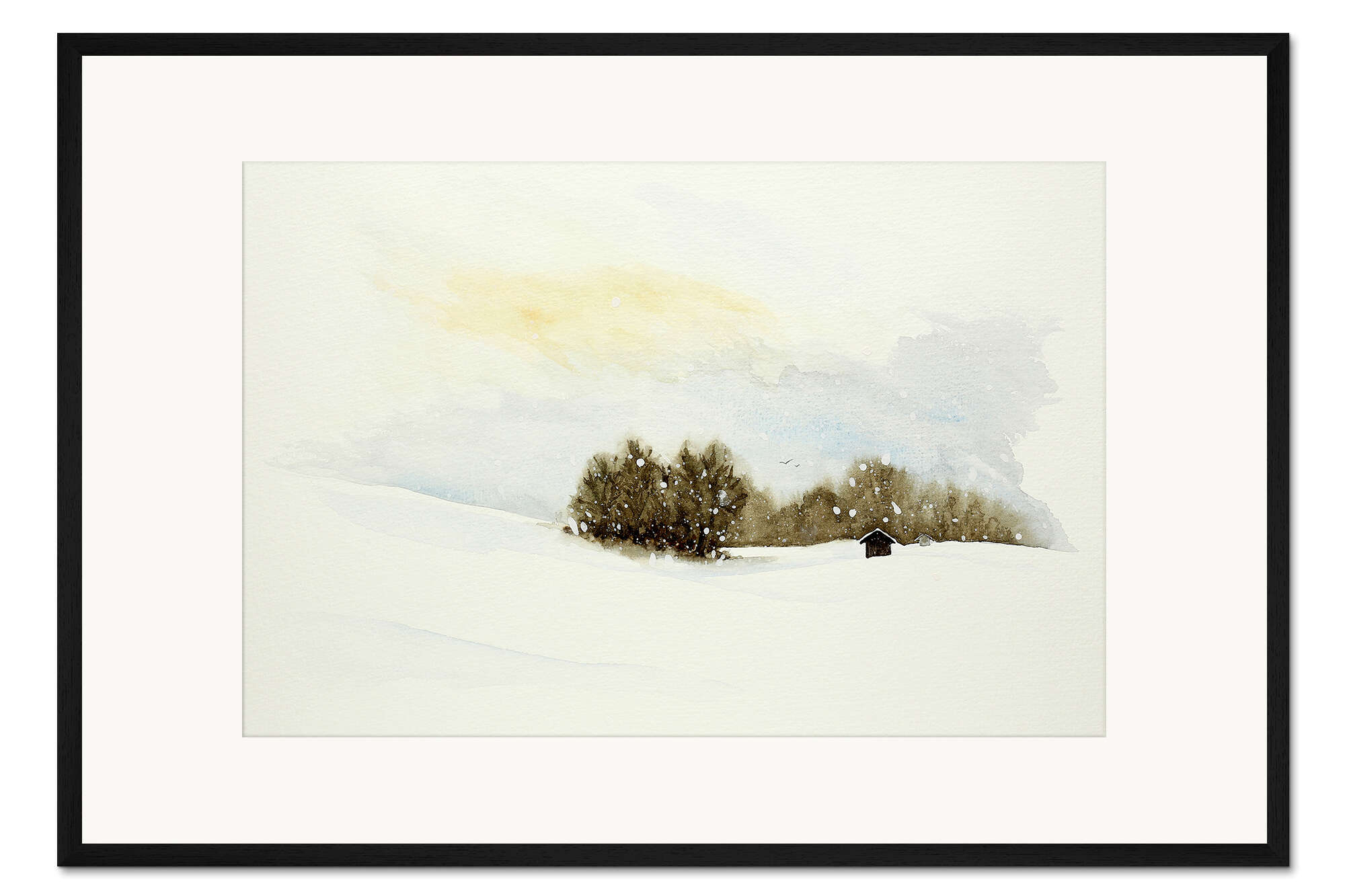 Posterlounge   Wandbilder   Beige   Natalie Bruns   Gerahmter Kunstdruck Winterlandschaft mit kleiner Hütte