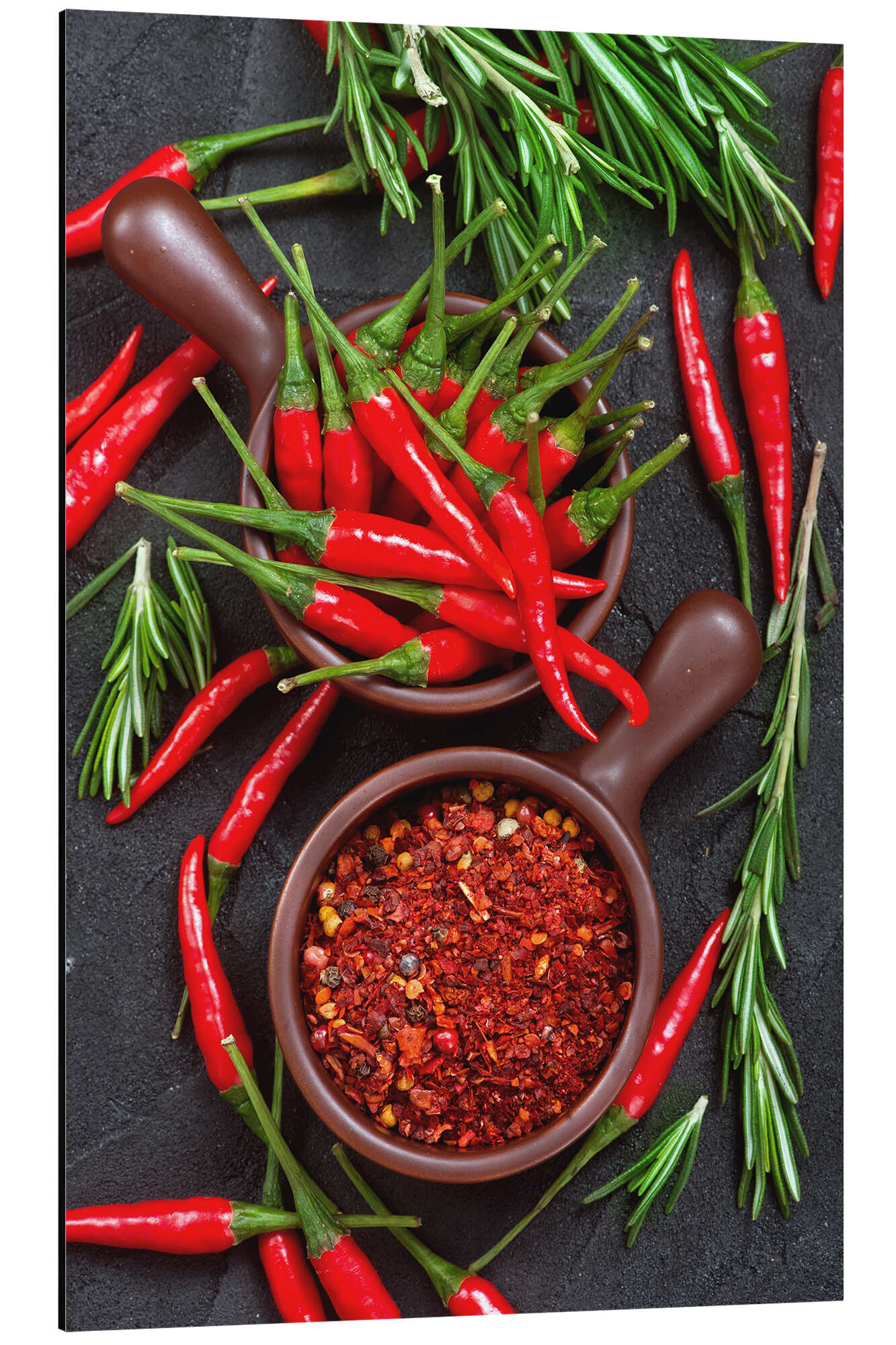 Magnettafel Chilischoten auf einem schwarzen Tisch