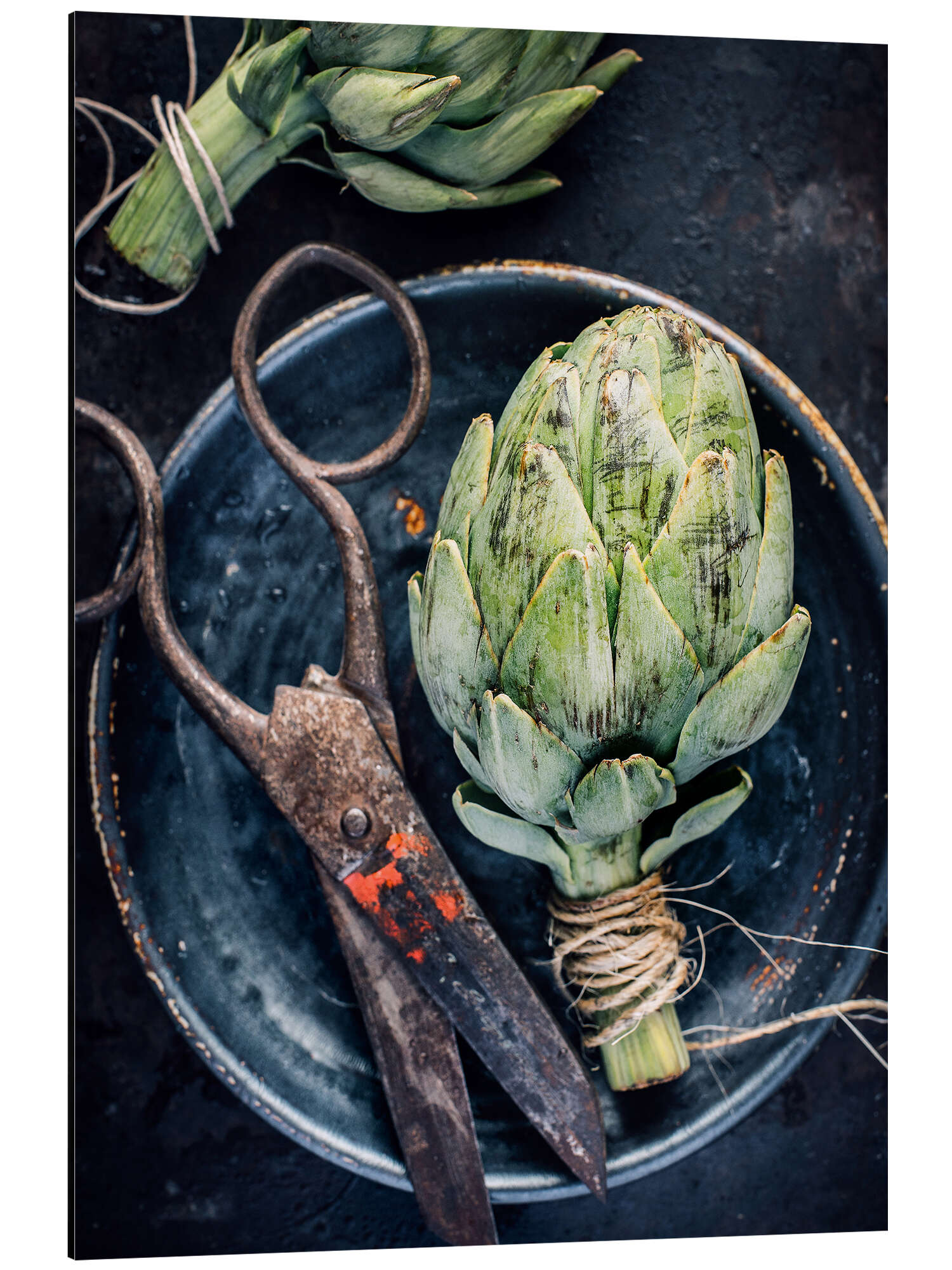 Posterlounge   Wandbilder   Fotografie   Magnettafel Stillleben mit Artischocken und alter Schere