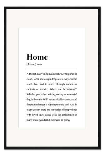 Posterlounge   Wandbilder   Sprüche & Zitate   aemmi   Gerahmter Kunstdruck Definition Zuhause (englisch)
