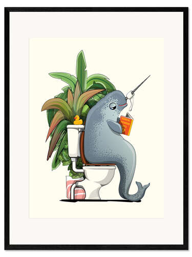 Posterlounge   Wandbilder   Tiere   Meerestiere   Wale   Wyatt9   Gerahmter Kunstdruck Narwal auf der Toilette