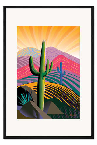 Posterlounge   Wandbilder   Illustration   Charles Harker   Gerahmter Kunstdruck Aufsteigender Saguaro