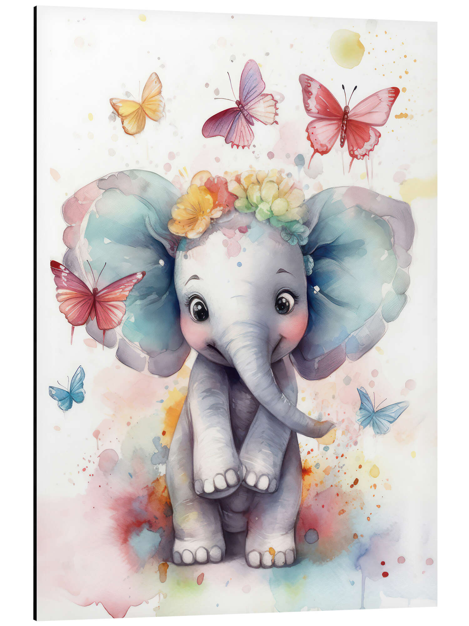 Posterlounge   Wandbilder   Kinderzimmer   Dolphins DreamDesign   Magnettafel Niedlicher Babyelefant mit Schmetterlingen