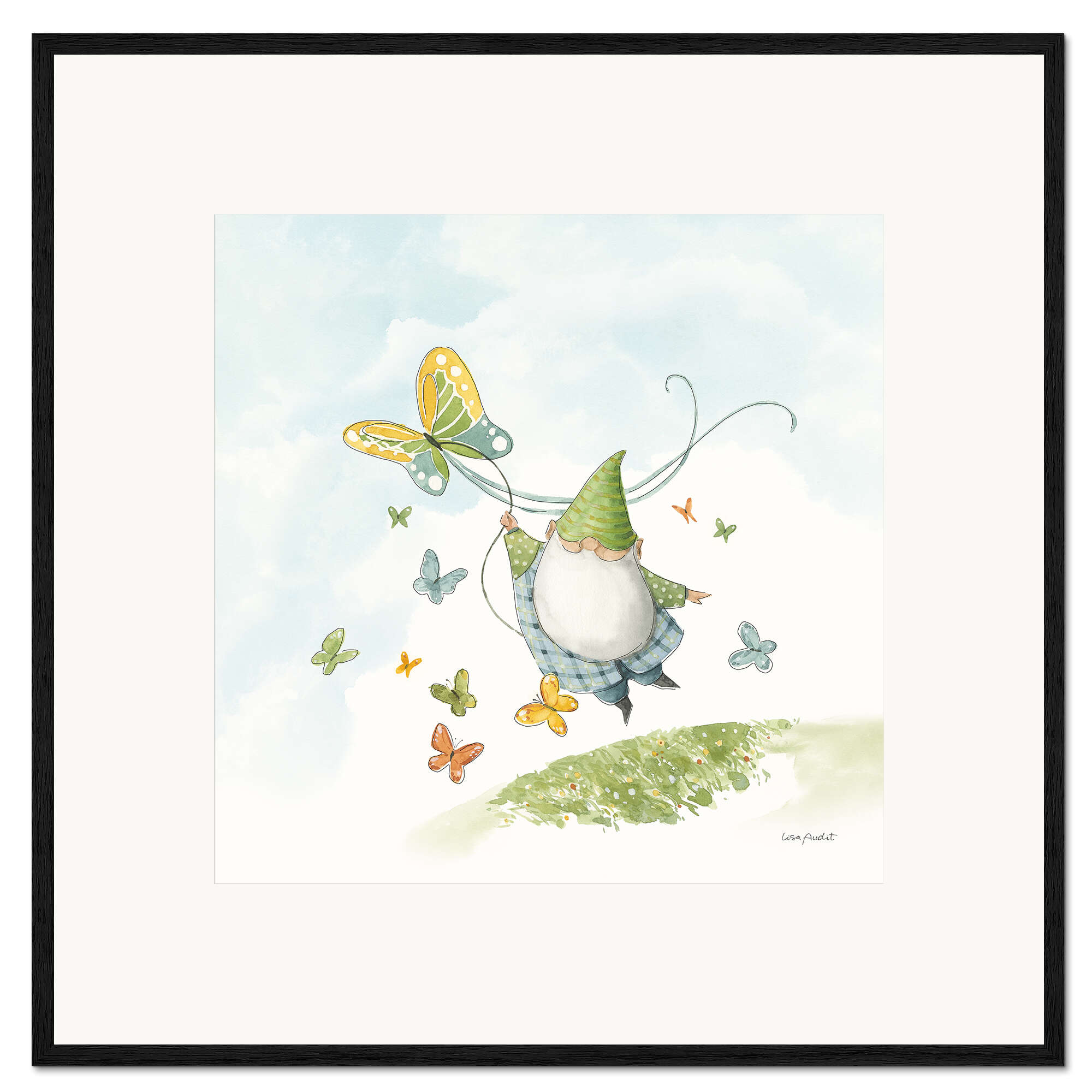 Posterlounge   Wandbilder   Illustration   Lisa Audit   Gerahmter Kunstdruck Gartenzwerg mit Schmetterlingsdrachen