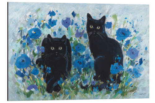 Posterlounge   Wandbilder   Tiere   Haustiere   Katzen   Lisa Audit   Magnettafel Schwarze Katzen zwischen blauen Blumen