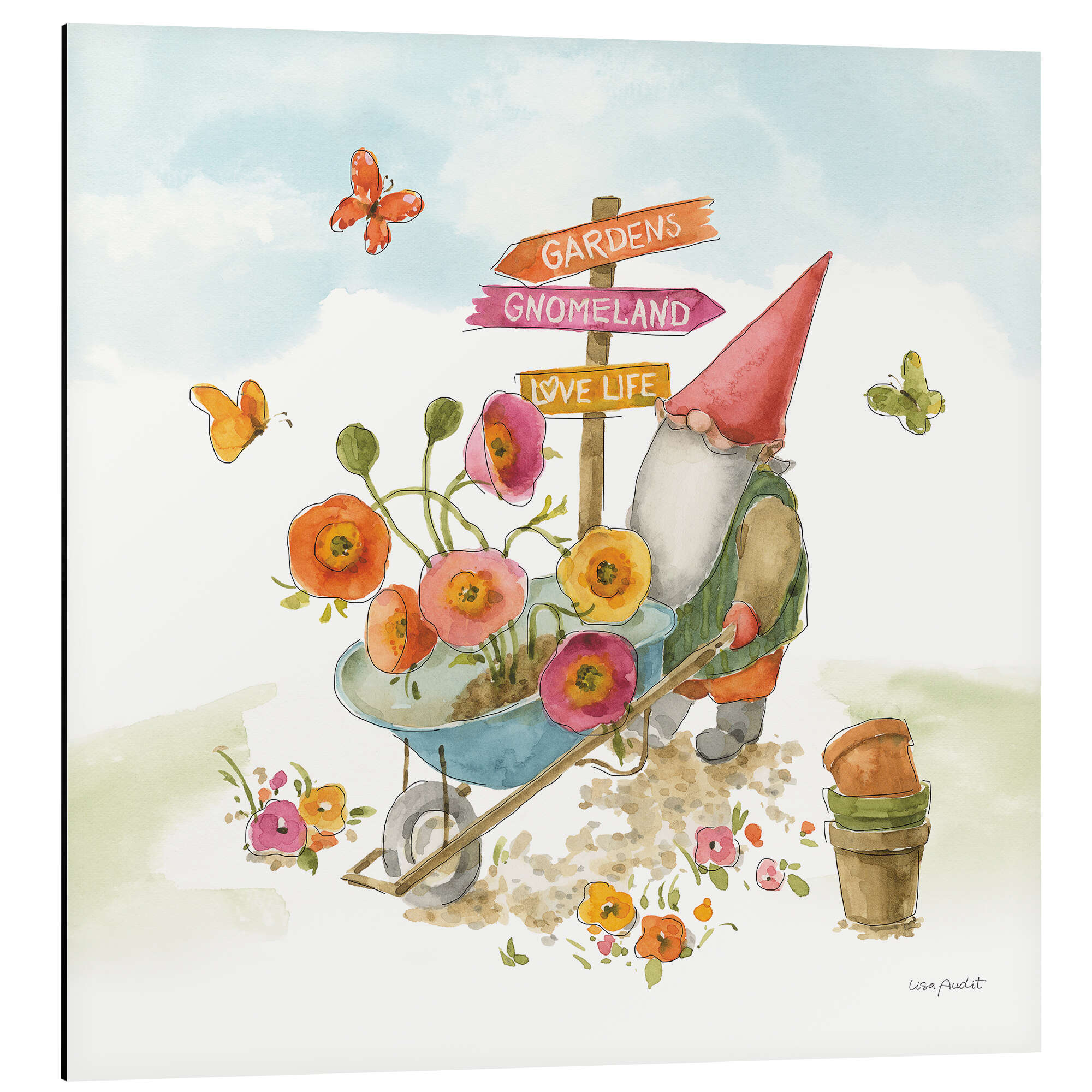 Magnettafel Gartenzwerg mit Schubkarre