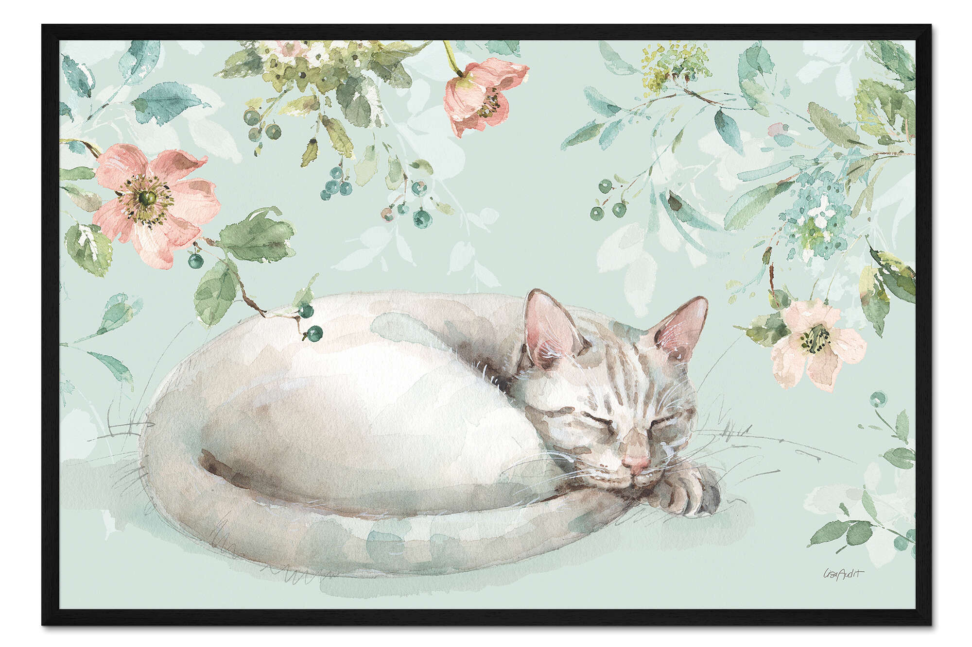 Posterlounge   Wandbilder   Malerei   Aquarell Malerei   Lisa Audit   Gerahmter Kunstdruck Schlafendes Kätzchen