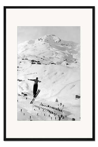 Posterlounge   Wandbilder   Natur   Winter   Vintage Ski Collection   Gerahmter Kunstdruck Skispringer über einem Tal, ca. 1937
