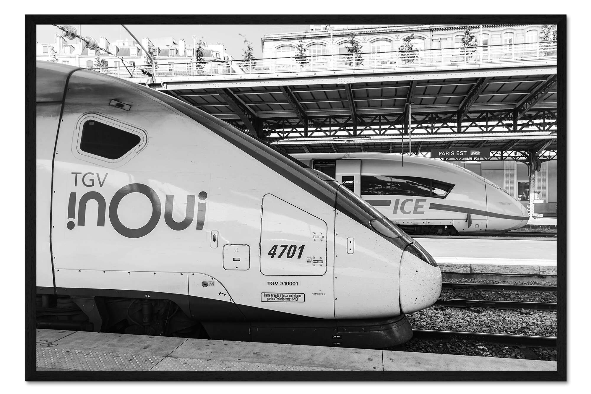 Posterlounge   Wandbilder   Schwarz-Weiß   Gerahmter Kunstdruck Französischer TGV und Deutscher ICE