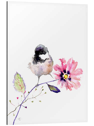 Blumenaquarell mit Vogel II