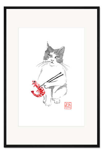 Posterlounge   Wandbilder   Illustration   Péchane   Gerahmter Kunstdruck Katze und Garnele