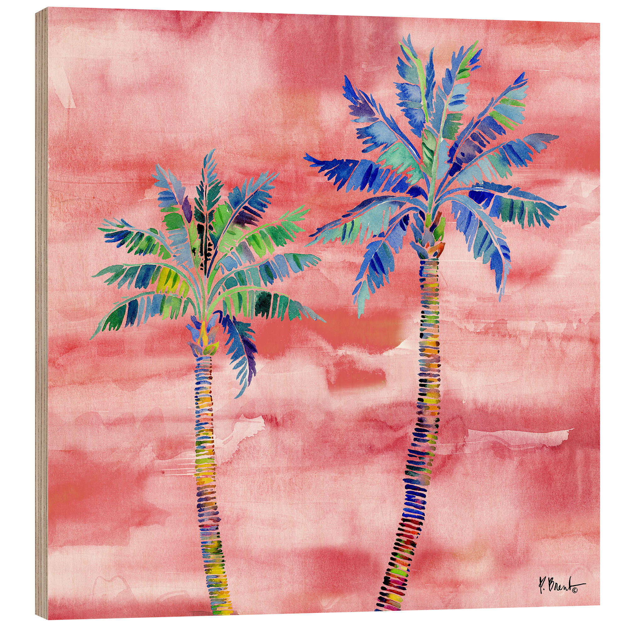 Holzbild Tahiti Palm Sunset II