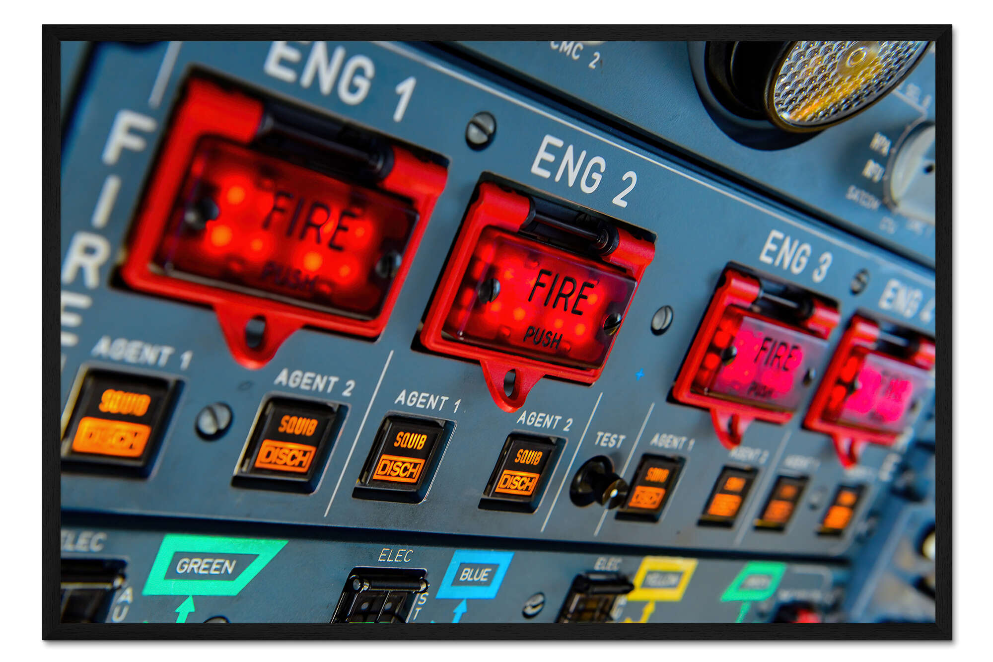 Posterlounge   Wandbilder   Fotografie   HADYPHOTO   Gerahmter Kunstdruck Overhead Panel Cockpit Airbus A340