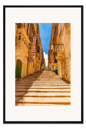 Posterlounge   Wandbilder   Fotografie   HADYPHOTO   Gerahmter Kunstdruck Treppe in der Altstadt von Valletta, Malta
