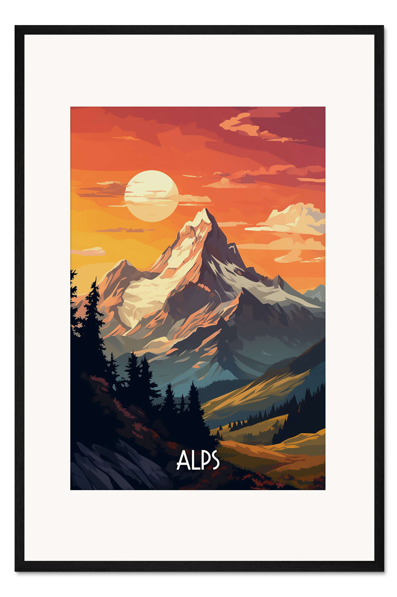 Posterlounge   Wandbilder   Illustration   Durro Art   Gerahmter Kunstdruck Reiseplakat Alpen
