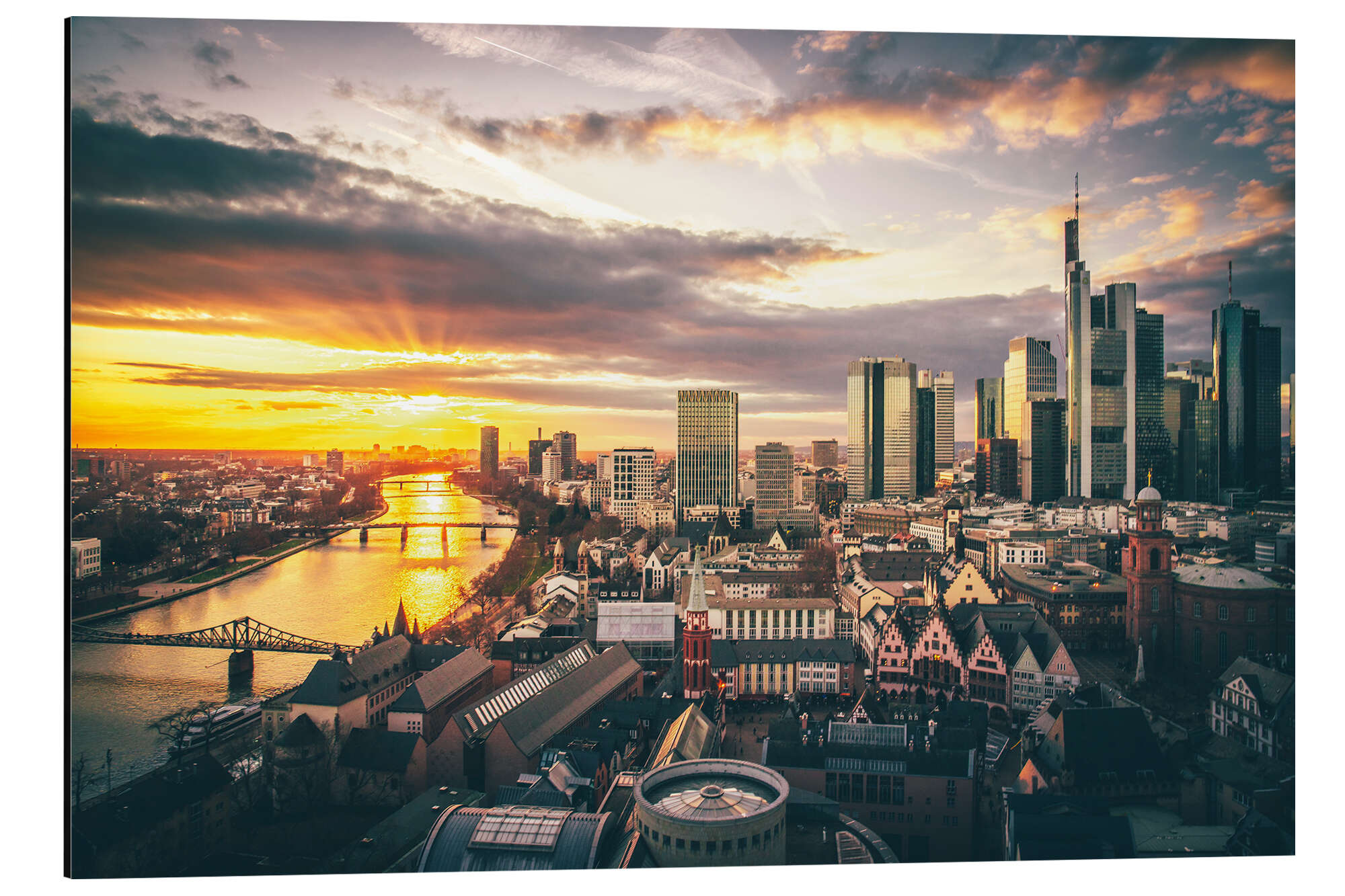 Posterlounge   Wandbilder   Städte   Frankfurt   Jan Wehnert   Magnettafel Frankfurt am Main von Oben, Skyline im Sonnenuntergang